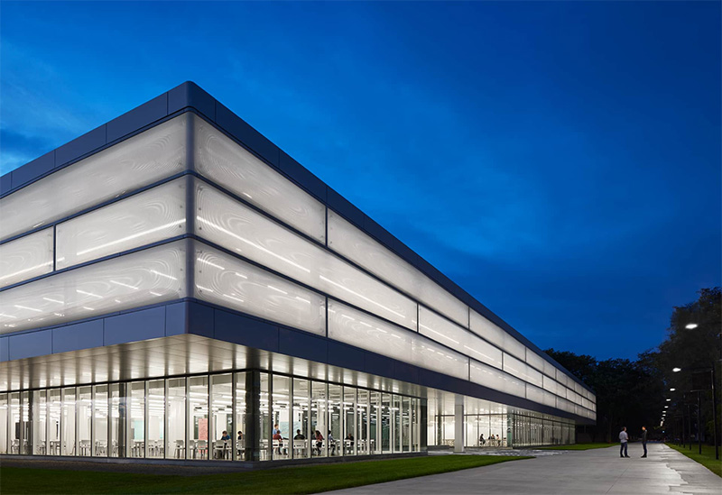 伊利諾伊理工學(xué)院 (Illinois Tech) 的 Ed Kaplan 家庭創(chuàng)新與科技創(chuàng)業(yè)學(xué)院是校園內(nèi)最新、最具創(chuàng)新性的建筑,采用 Vector Foiltec 設(shè)計(jì)的獨(dú)一無(wú)二的 Texlon? ETFE 外墻。