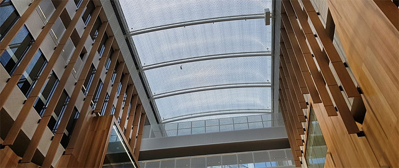 我們的ETFE 系統(tǒng)覆蓋了高中的中心,創(chuàng)造了一個面積達(dá) 403 平方米的美麗中庭。 ETFE 的半透明和紫外線透明特性允許自然光通過中庭流入學(xué)校。