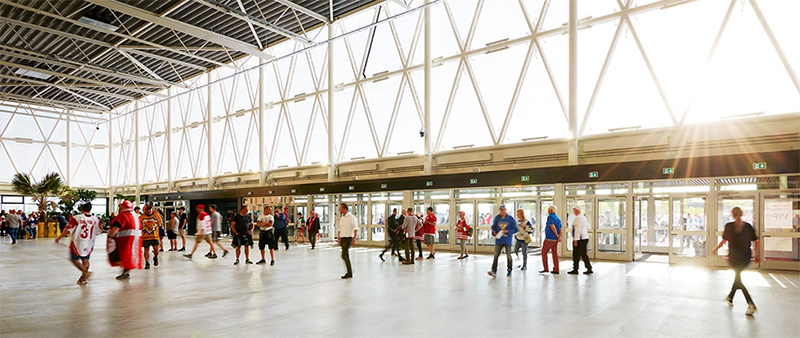 ETFE 的另一個優(yōu)點是可以在展廳內(nèi)無反射的情況下實現(xiàn)出色的聲學(xué)效果。這對于人多聚集的地方最為重要。與玻璃等其他材料相比,建筑 ETFE 解決方案提供了一種完全不同、令人愉悅的氛圍和聲學(xué)效果。