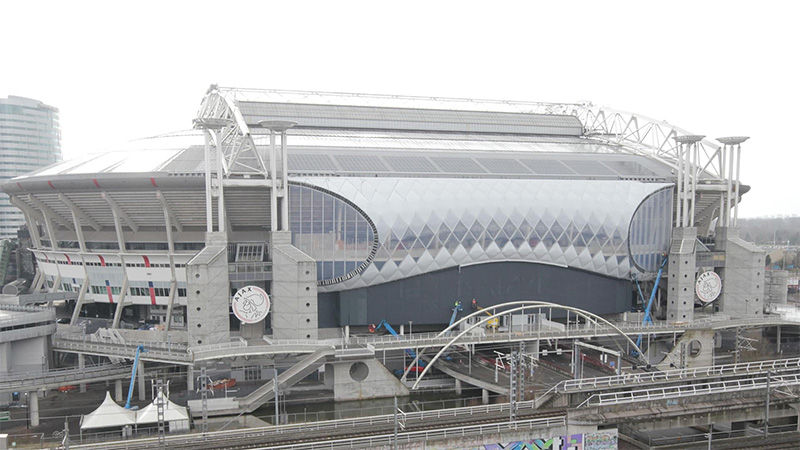 約翰克魯伊夫競技場(前阿姆斯特丹競技場)一直在翻新其體育場。新的引人注目的外墻由 Vector Foiltec 的ETFE 制成。鋼結構支撐著由兩層 ETFE 組成的 2,500 平方米ETFE 箔墊外墻。 Vector Foiltec 很榮幸成為團隊的一員。